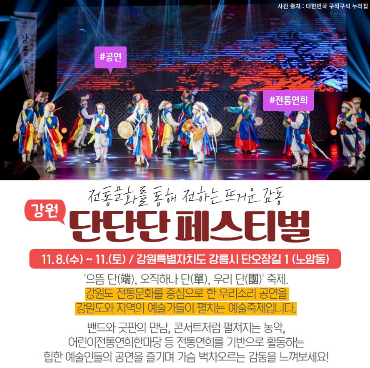 - 강원특별자치도 강릉시 단오장길 1(노암동)/11.8.(수)~11.(토)