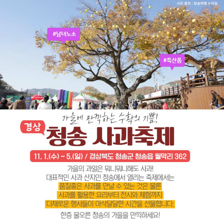 - 경상북도 청송군 청송읍 월막리 365 / 11.1.(수) ~5.(일)