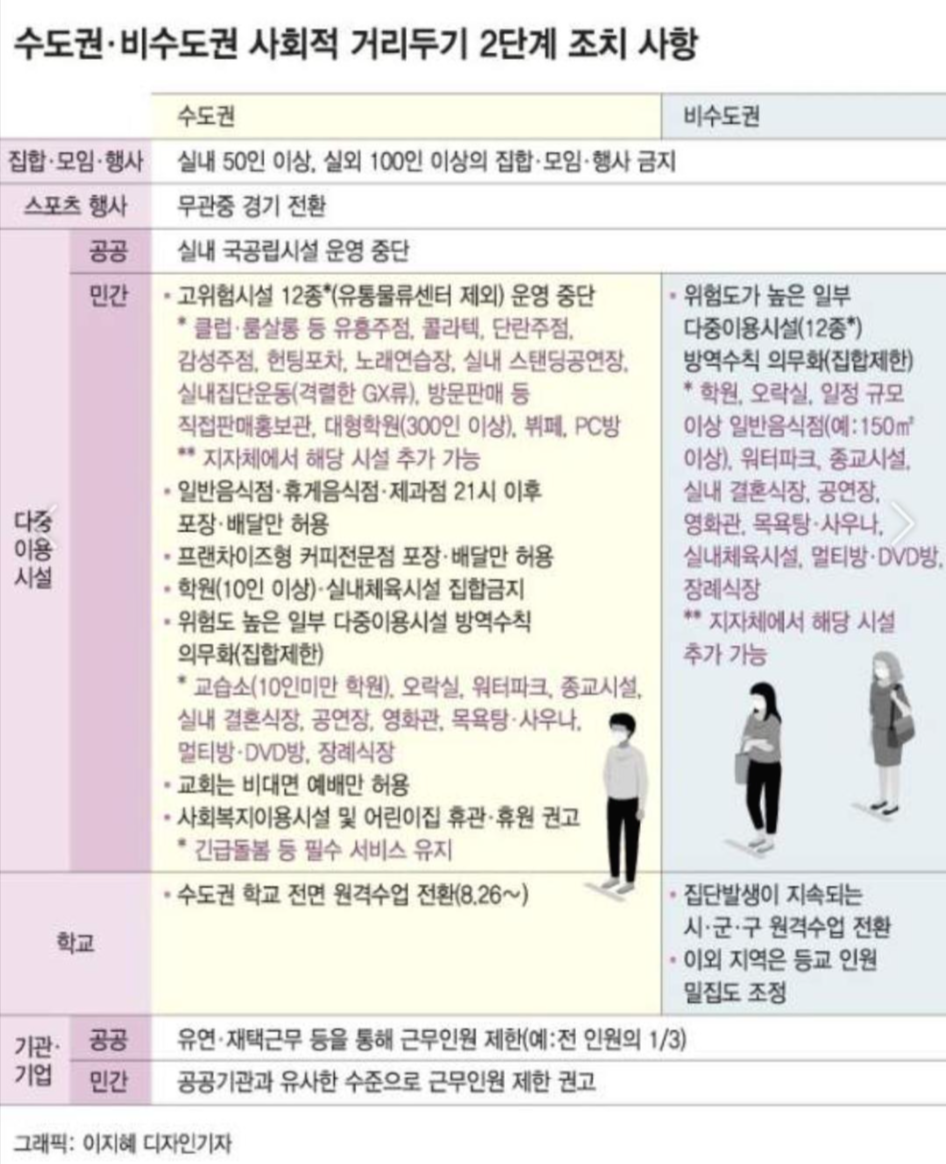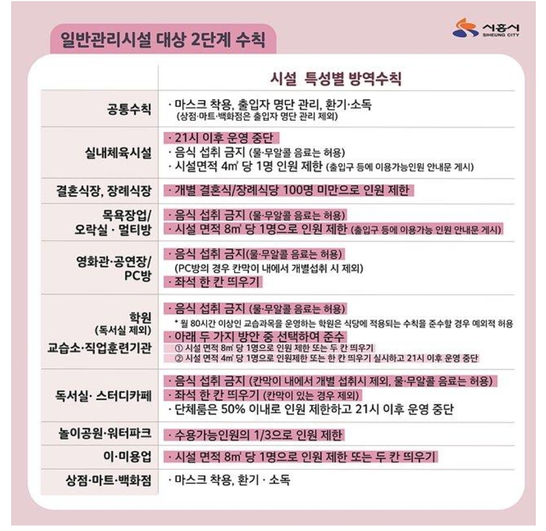 수도권 비수도권 사회적 거리두기 2단계 조치 사항