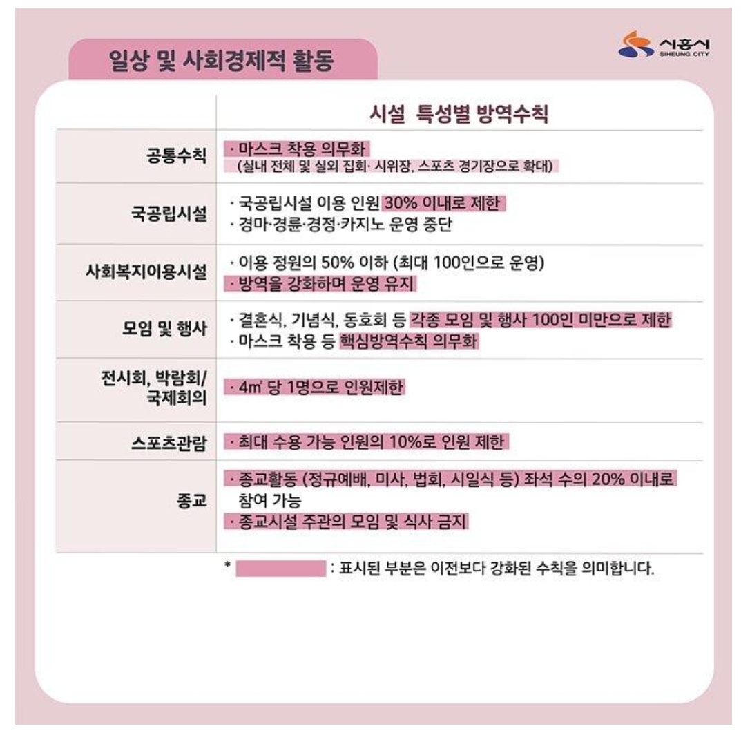이번 조치사항은 수도권 사회적 거리두기로 20년 11월 24일부터 적용이 됩니다.