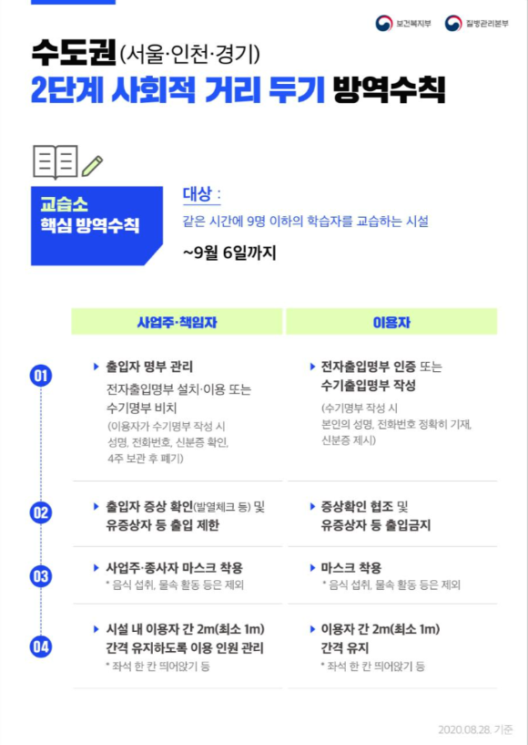 수도권 2단계 교습소 핵심 방역수칙