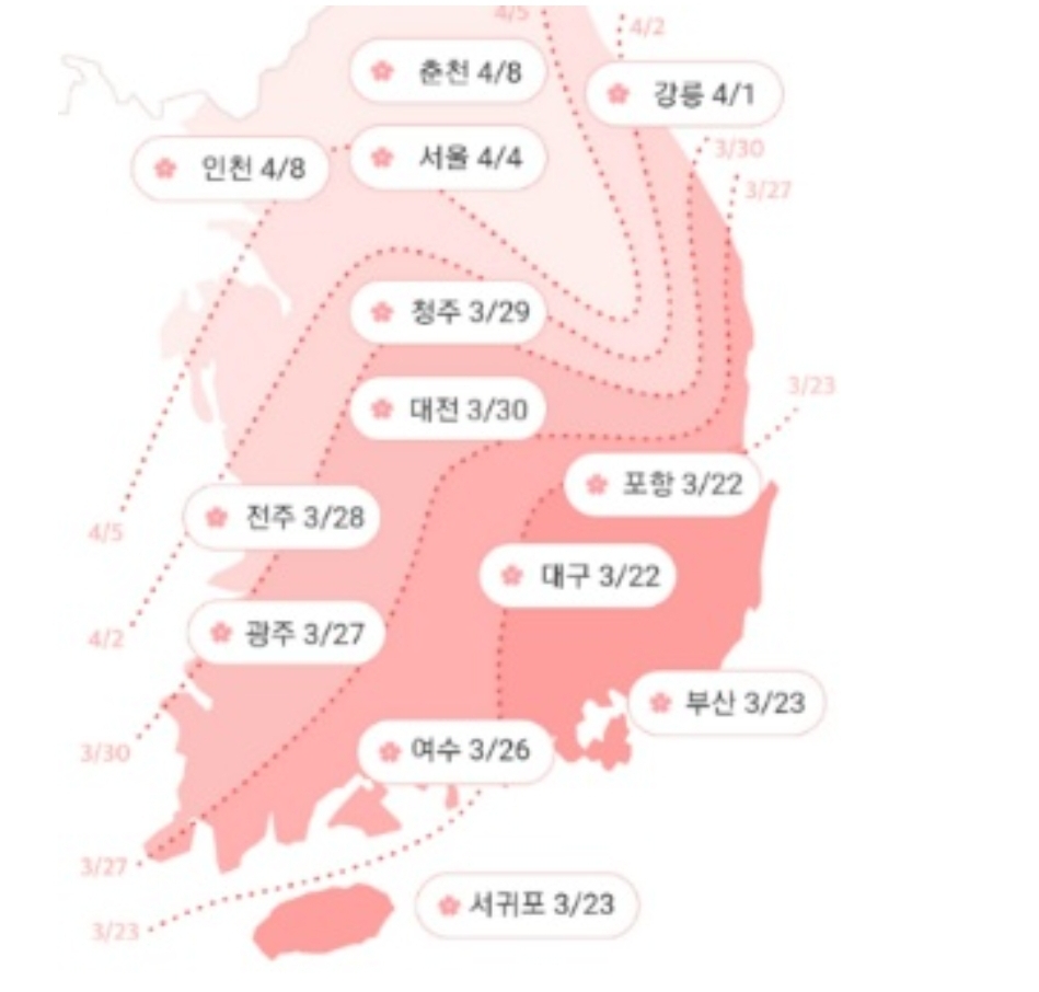 서울 기준 평년 벚꽃 개화일은 4월 7일이라고 합니다.