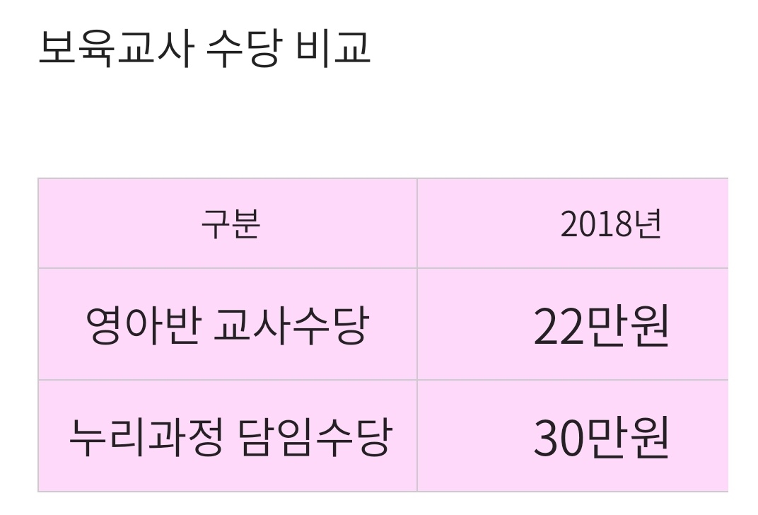 아래는 2013년도부터 2020년도까지 보육교사 월급을 표로 비교해보겠습니다.