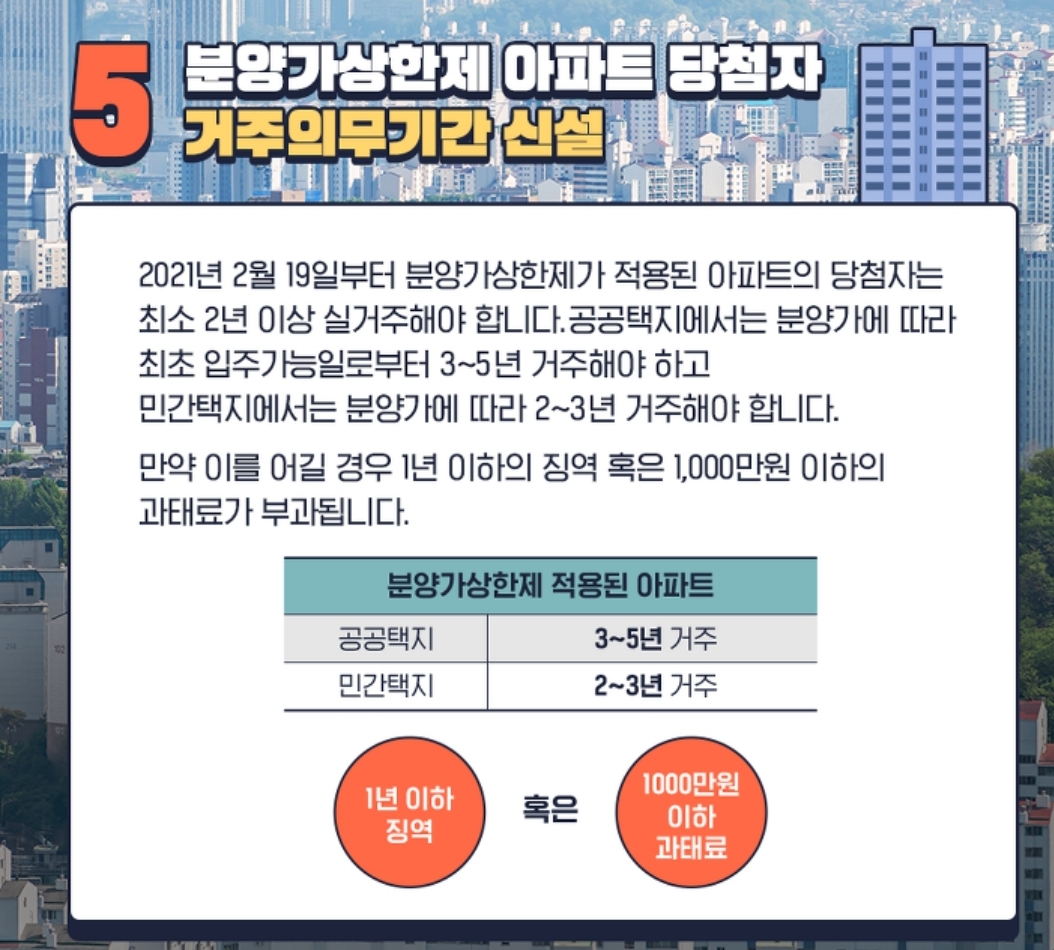 5. 분양가상한제 아파트 담첨자 거주의무기간 신설