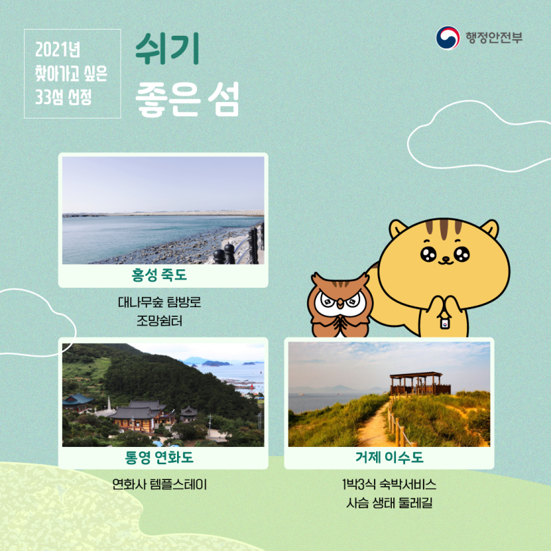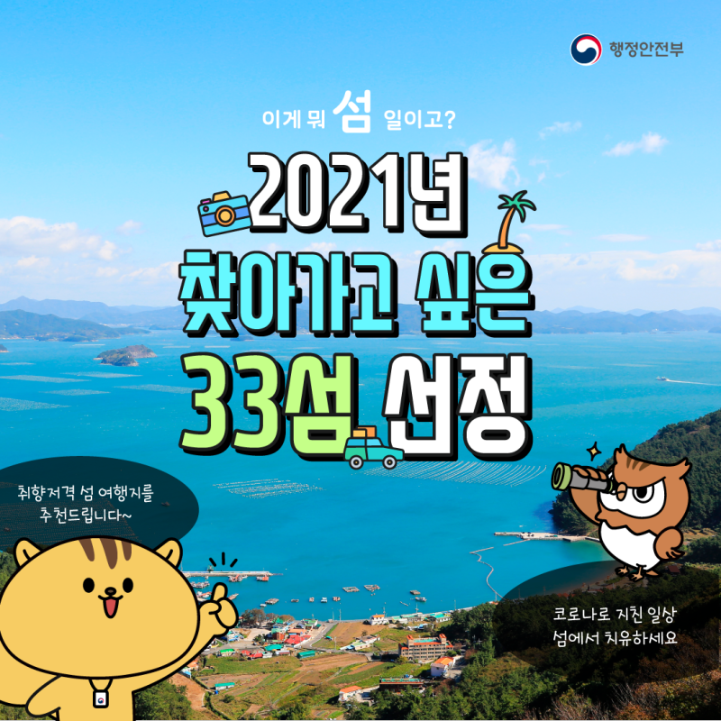 바로 행정안전부에서 2021년 찾아가고 싶은 33섬을 선정했다고 합니다.