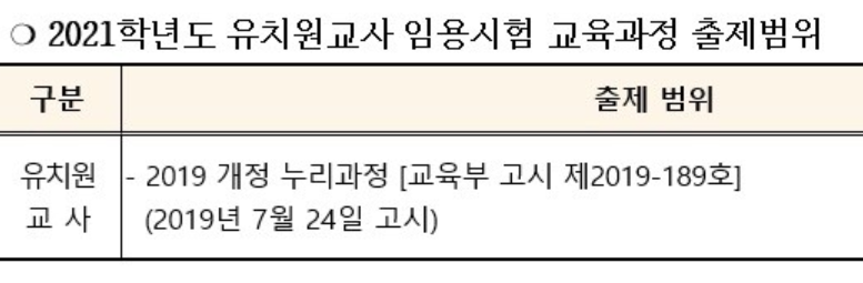 2021학년도 유치원교사 임용시험 교육과정 출제범위