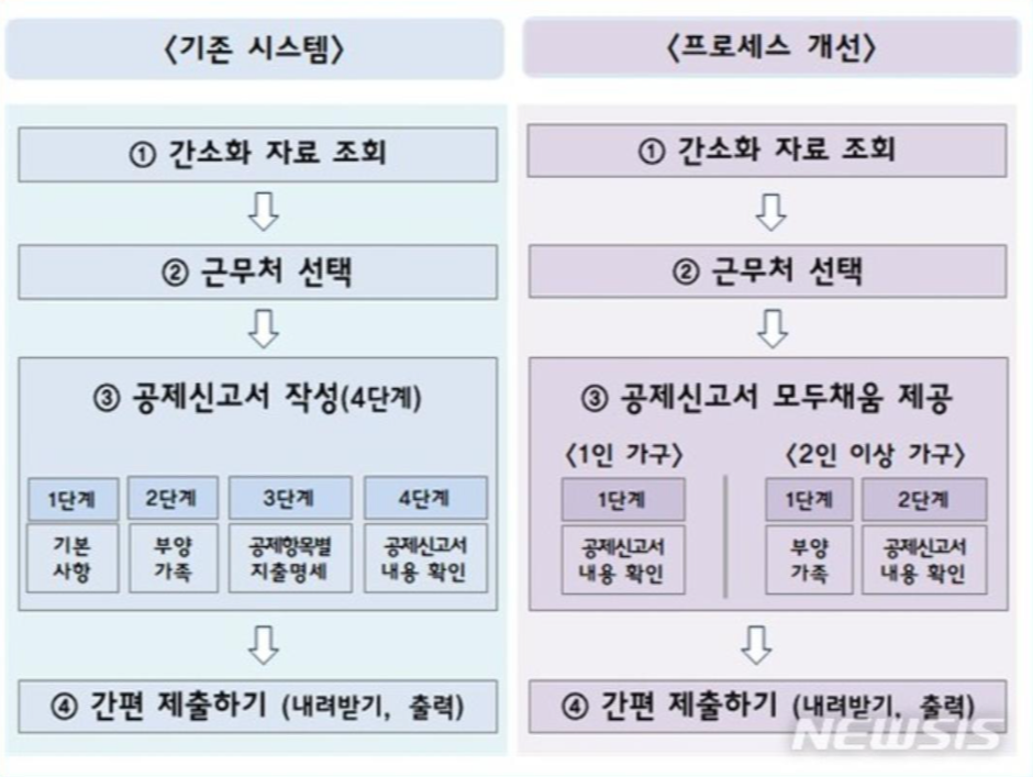 그리고, 2021년도는 공제 신고서 작성 절차가 4→1~2단계로 간소화되었다고 합니다.