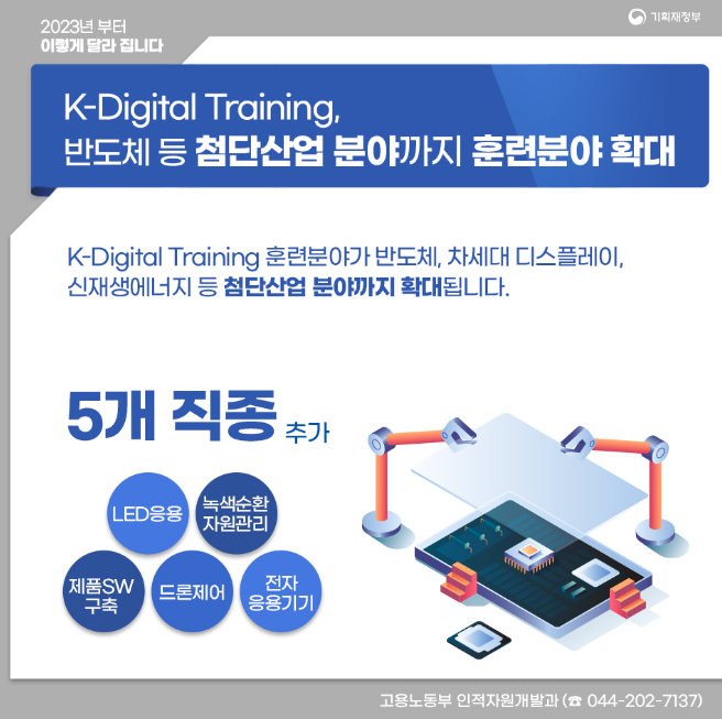 K-Digital Training 훈련분야가 반도체, 차세대 디스플레이, 신재생에너지 등 첨단산업 분야까지 확대됩니다.