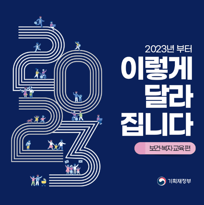오늘은 2023년 달라지는 보건과 복지 및 교육 지원에 대해 알아보겠습니다.