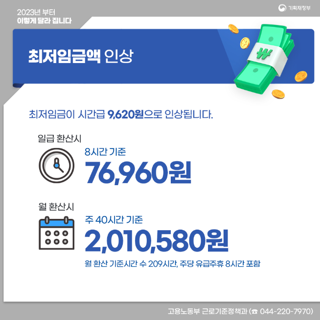 최저임금이 시간급 9,620원으로 인상됩니다.