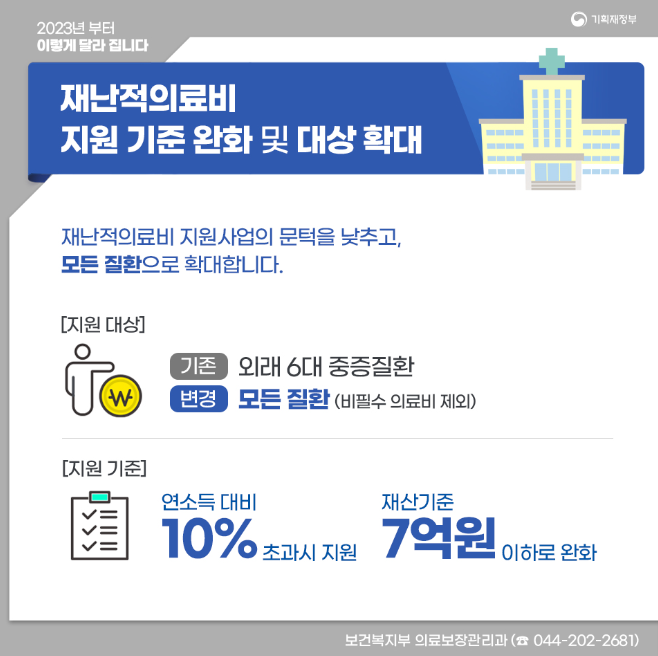 재난적의료비 지원 기준 완화 및 대상 확대