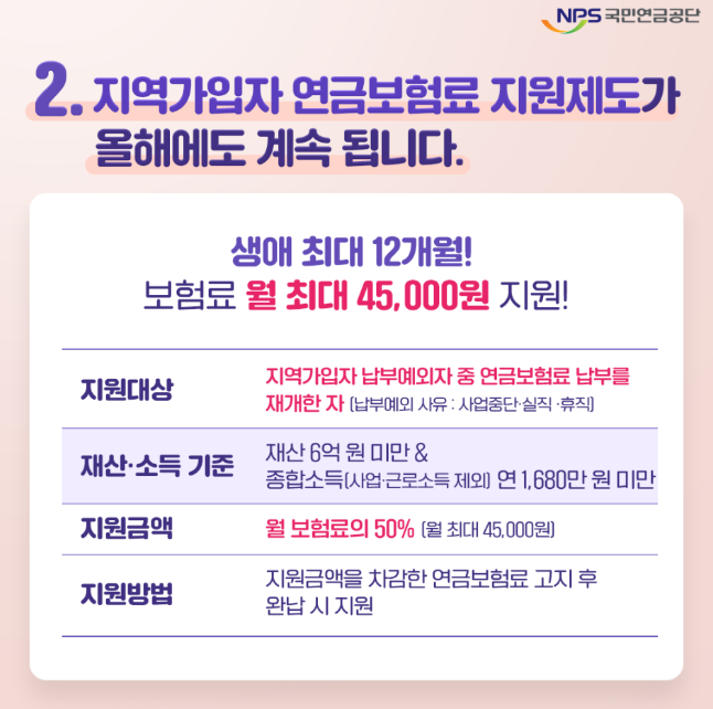 2. 지역가입자 연금보험료 지원제도가 올해도 계속됩니다.