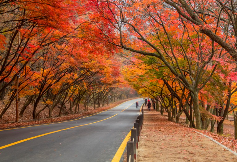 가을 이맘때쯤 단풍나무들이 얽혀 만들어내는 단풍터널은 보는 이들에게 절로 감탄을 자아내게 합니다.