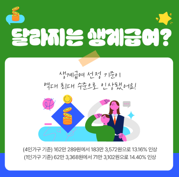 생계급여 선정 기준 역대 최대 수준 인상!