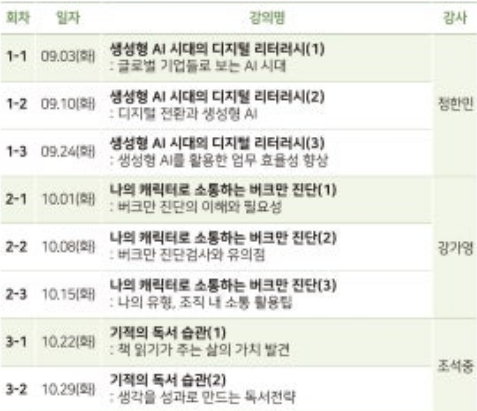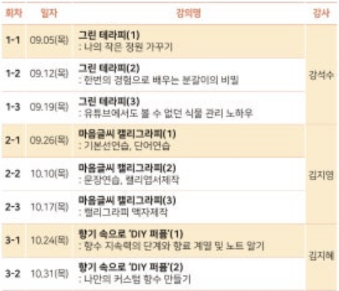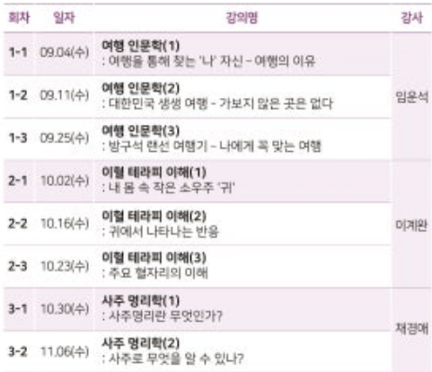 내용 : 인문 소양 함양을 위한 문화·예술 강좌