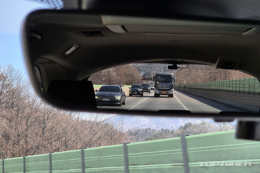운전석에서의 시트포지션은 안정적입니다. 시트만 껑충한 일부 대형 SUV와 달리 바닥이 높은 세단과 유사한 크로스오버에 가까운 구성입니다. 전측방 시야가 좋은 것과 함께 안정적인 시트포지션은 장거리 주행시 피로감을 줄여주는 요소입니다.  다만 조수석 높낮이가 조절되지 않는 점은 아쉽습니다.
