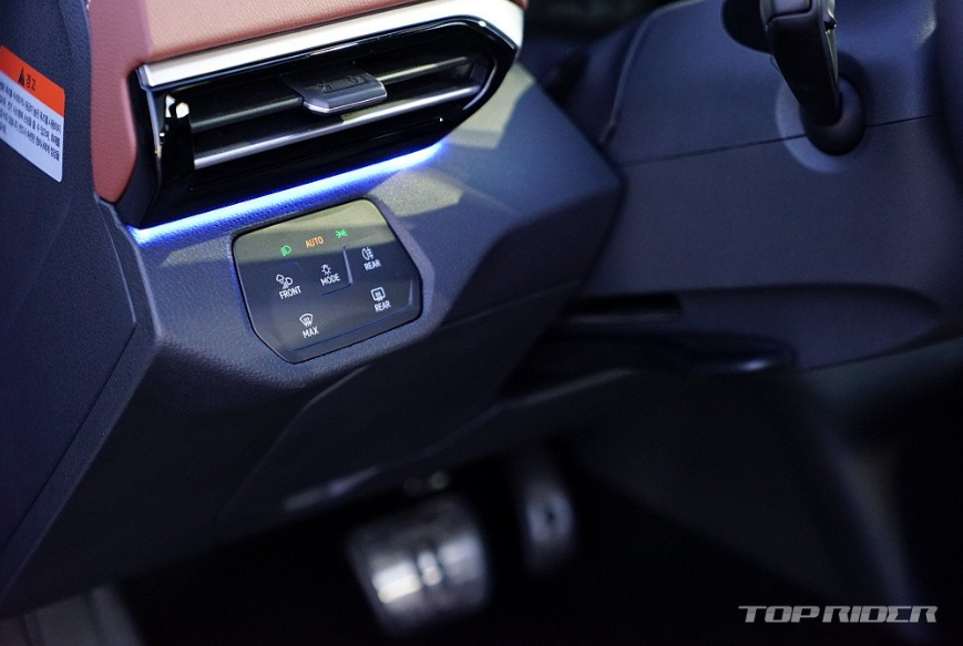IQ.라이트 때문에 폭스바겐 전기차를 구입하는 사람들도 있는 것으로 얘기 도는데, 동급 경쟁차에서는 찾아보기 어려운 가시성과 영리한 움직임을 자랑합니다. 또한 실내에서는 윈드실드 하단의 LED 바가 상황에 따라 다양하게 변화되는데, 운전자와 교감하는 느낌을 전하는 키 포인트입니다.