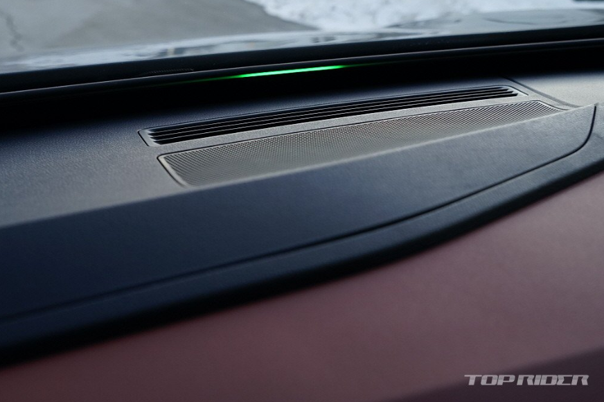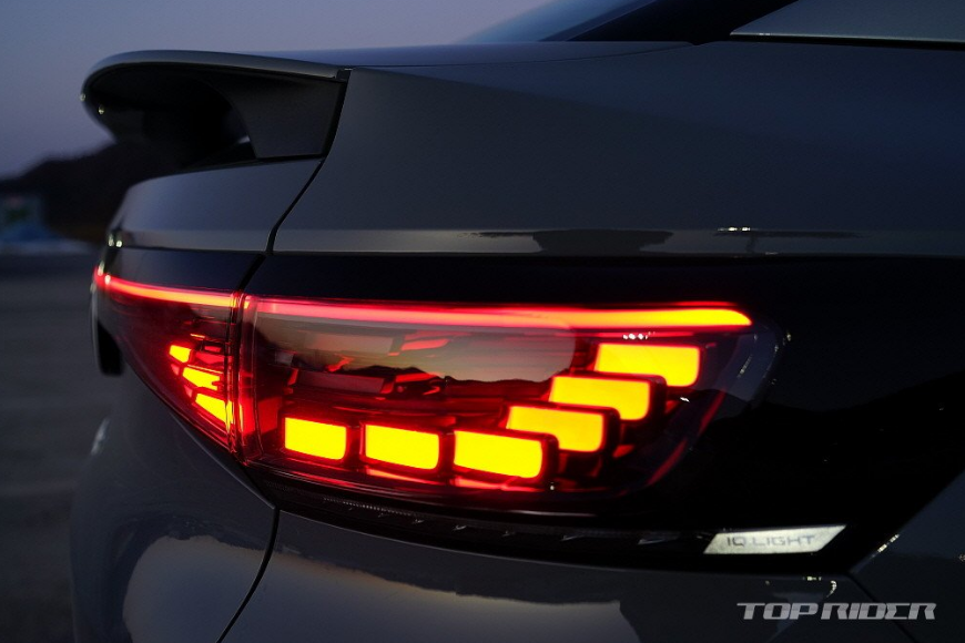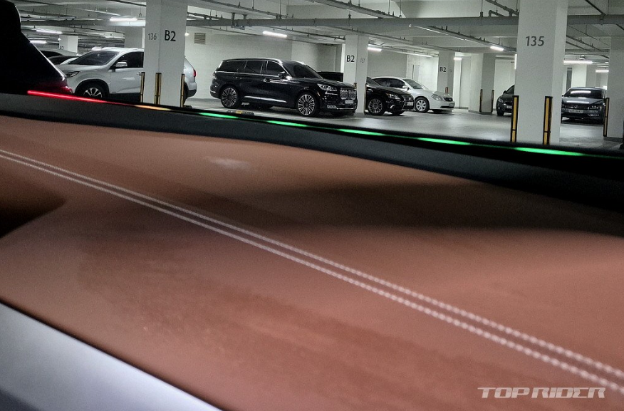 대시보드 중앙에는 12.9인치 디스플레이가 위치하는데, UI와 UX가 기존과는 다릅니다. 시인성과 조작 편의성이 향상된 것과 함께 쨍한 모습으로 해상도가 좋아졌습니다. 보이스 어시스턴트 IDA가 탑재될 예정인데, 대부분의 조작이 음성으로 가능하다고 합니다. 윈드실드 하단 LED 바의 역할이 커 보입니다.