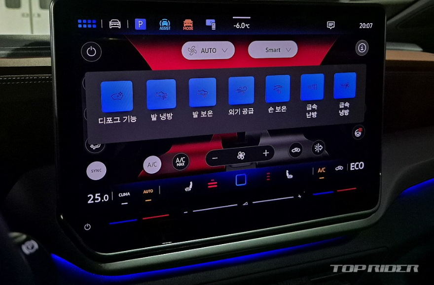 특히 인상적인 부분은 공조장치에 발 보온, 손 보온 등 공조 관련 운전자의 주요 요구사항을 아이콘으로 따로 배치한 점입니다. 겨울철 동승자가 손이나 발이 춥다고 하면 집중적인 공조 조작이 가능하다고 합니다. 히터가 약했던 초기형 전기차와 달리 영하 15도 내외의 추운 날씨에도 차 안은 따뜻했습니다.