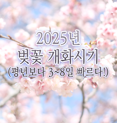 오늘은 2025년 벚꽃 개화시기(평년보다 3~8일 빠르다!)에 대해 알아보겠습니다.