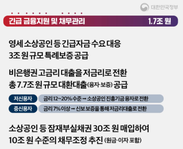 영세 소상공인 등 긴급자금 수용에 대응하기 위해 3조 원 규모의 특례보증금을 공급