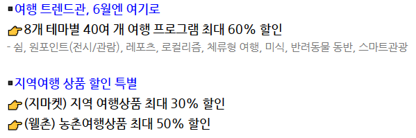 6월 1일부터 30일까지 국내 숙박·교통·여행상품 할인혜택을 드립니다.