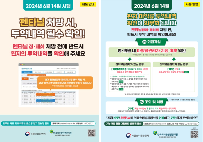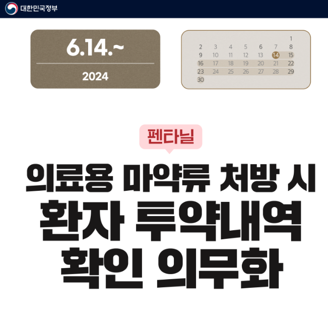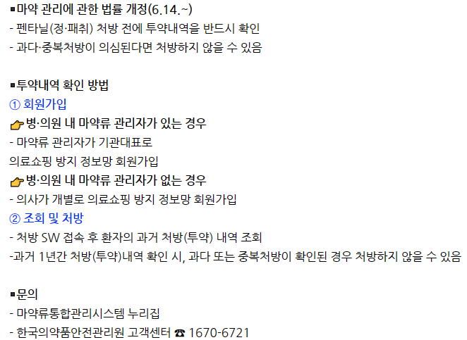 6월 14일부터 의료용 마약류를 처방할 때 환자의 투약내역을 반드시 확인해야 합니다.