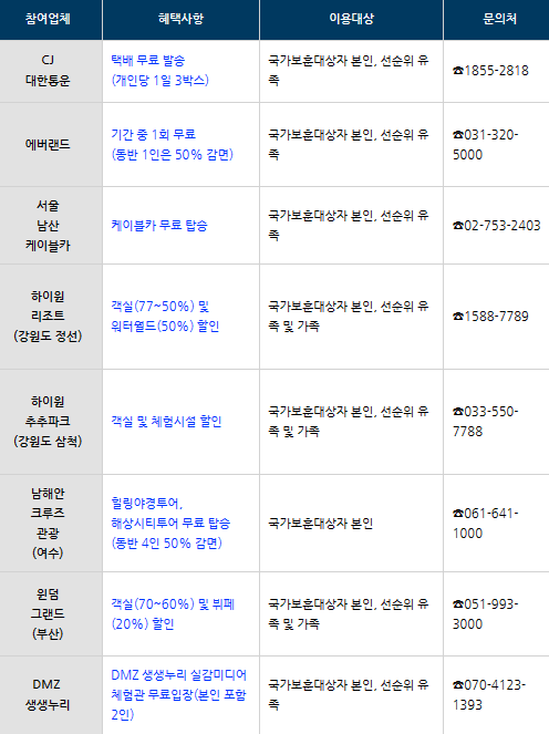호국보훈의 달을 맞아 보훈가족에게 국내 항공료·문화시설·택배비 할인 등 다양한 혜택을 제공한다고 합니다.