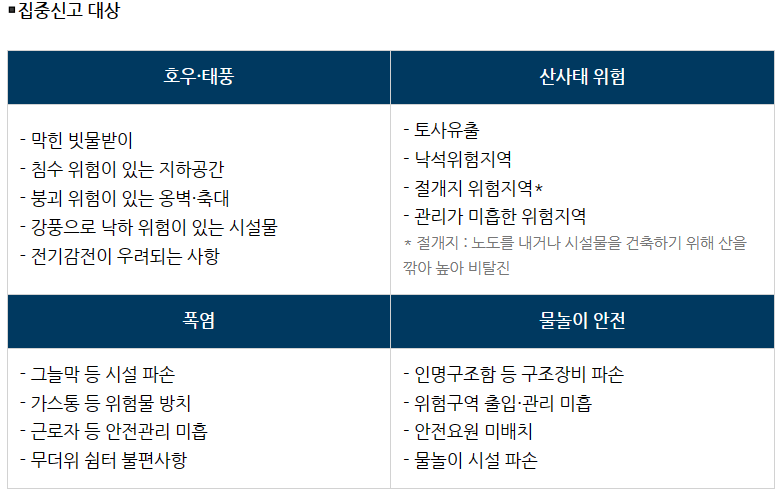 여름철 재난·안전 위험요소 집중신고기간