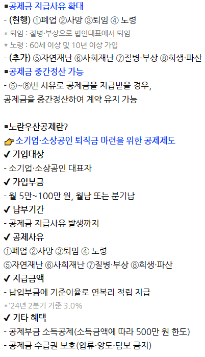 6월부터는 공제금 지급 사유를 대폭 확대하고 중간정산도 가능하게 개편했다고 합니다.
