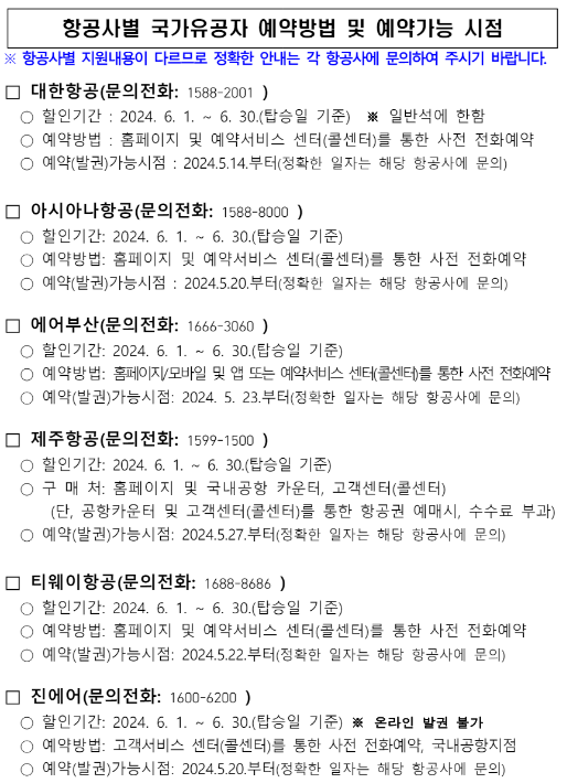 - 보훈 대상별로 국내선 항공료 30~50% 할인