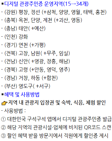 ✔ 디지털 관광주민증 운영지역 확대