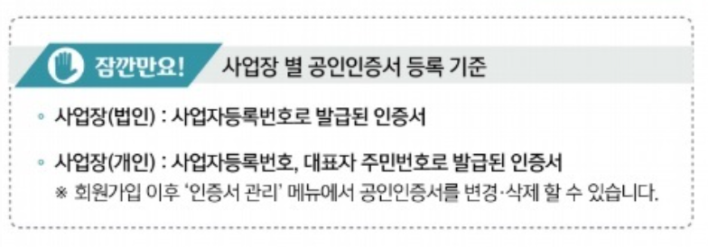회원가입이 되었다면, 사업장의 공동인증서를 등록합니다.( 개인사업자는 개인 공동인증서)