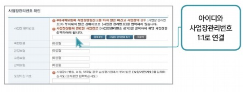 ④ 아이디와 사업장관리번호 1:1로 연결