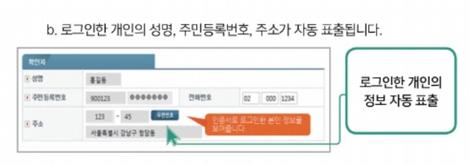 b. 로그인한 개인의 정보 자동 표출