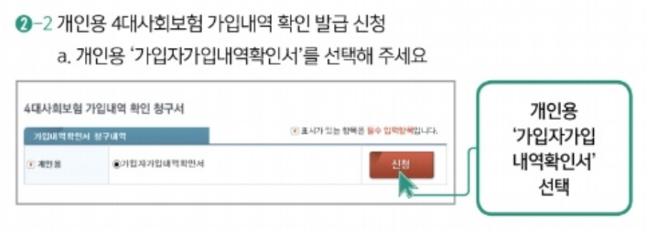 <개인용 4대보험 가입내역 확인 발급 신청>