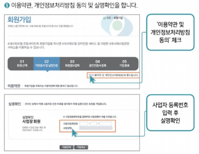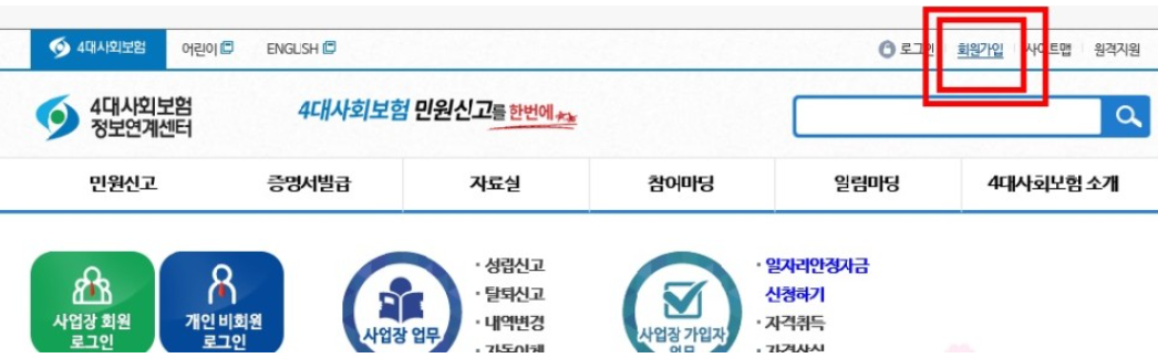 사업장의 경우 회원가입을 해야 한다고 합니다. 회원가입은 아래 사진을 참고하면 됩니다.