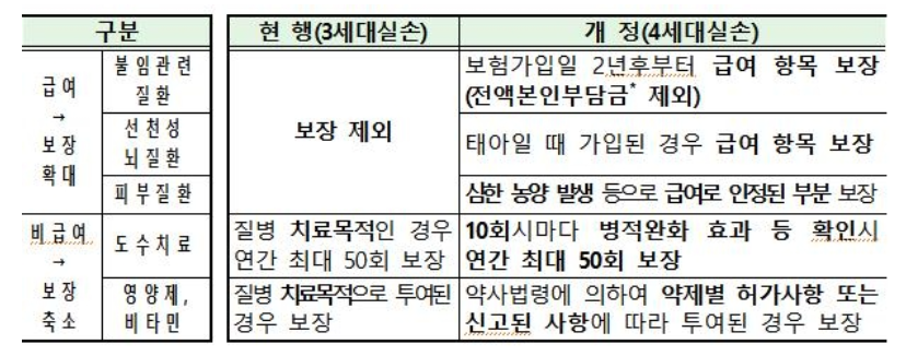 급여 항목은 사회환경 변화 등을 고려해 불임 관련 질환, 선청성 뇌질환, 피부질환 등에 대해 보장이 확대된다고 합니다.
