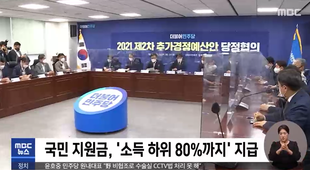 당정이 올해 두 번째 추가경정예산(추경)을 통해 소득 하위 80%에 재난지원금(코로나 상생 국민지원금)을 주기로 합의 했다고 합니다.