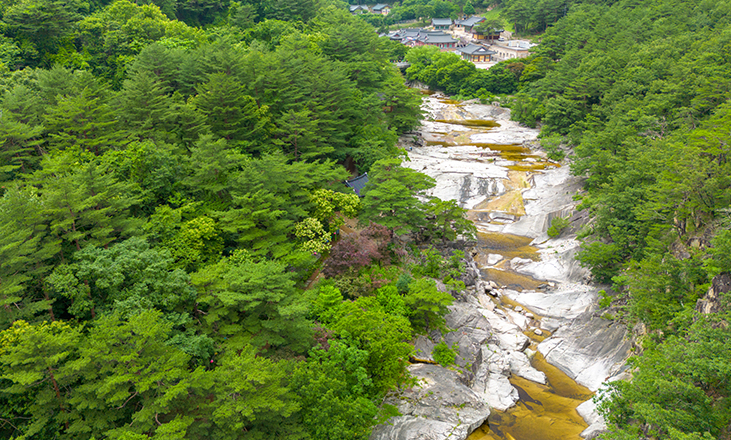 무더위를 식혀줄 계곡이 손짓하는 계절입니다. 강원도 동해시 무릉계곡(명승)은 청량한 물소리가 풍류를 만끽하는 피서지로, 거대한 기암괴석과 장쾌한 폭포가 환상적입니다. 호암소에서 용추폭포까지 약 4km 이어지는 계곡은 초입에 있는 무릉반석부터 눈길을 끕니다. 옛날 묵객들이 자연에 감탄하며 남긴 암각서가 곳곳에 보입니다. 나라에서 수륙재(국가무형문화재)를 설행한 삼화사도 무릉계곡에 자리합니다. 계곡을 따라 걷는 경사가 완만하고, 수려한 풍경이 진경산수를 보는 듯합니다.