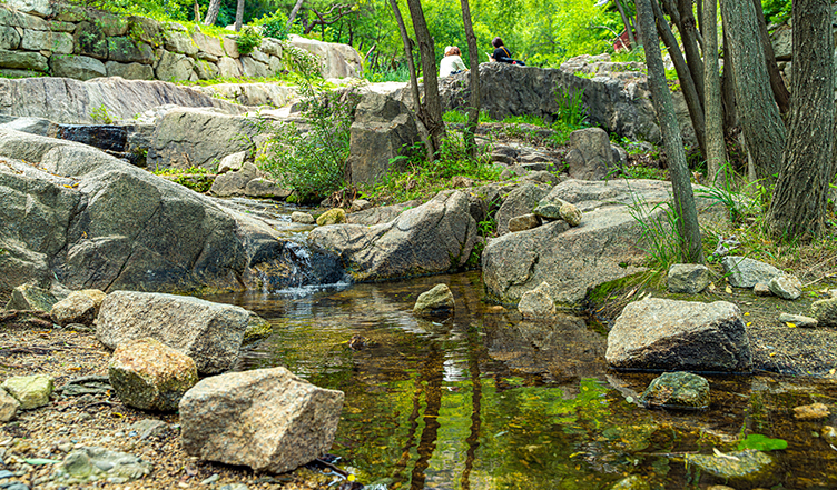 현재는 건천으로 평소에 물이 흐르지 않는데, 많은 비가 내린 뒤에는 수성동계곡의 명성을 확인할 수 있습니다. 곳곳에 너른 바위가 있어 쉬었다 가기 좋습니다. 조선의 선비들처럼 풍류를 즐길 만한 산책로도 조성됐습니다. 수성동계곡과 인왕산, 세종마을(서촌)과 경복궁, 청와대 인근 풍경을 한눈에 감상하고 싶다면 인왕산자락길에 있는 전망대에 올라가 보는 것도 좋습니다.