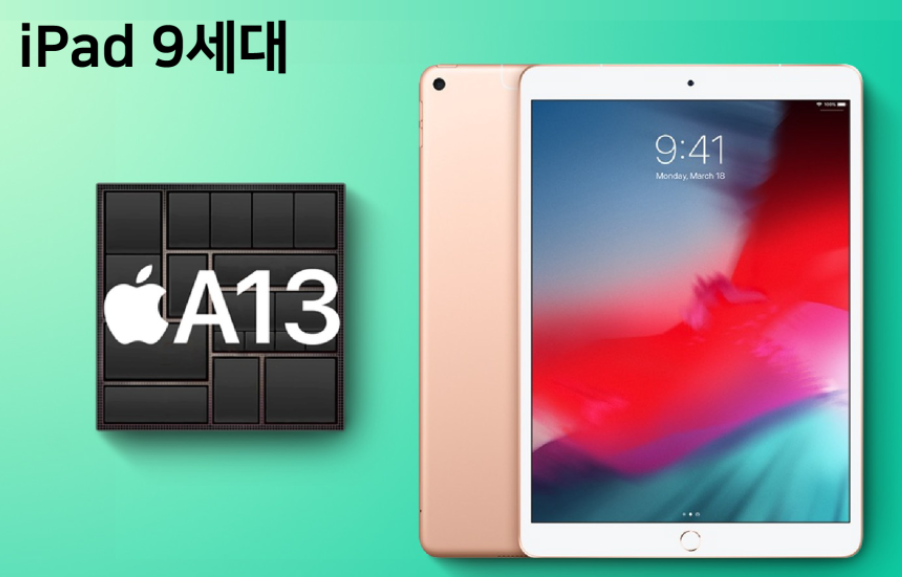 추측으로 의하면 아이패드 9세대 애플은 10.5인치 혹은 10.2인치 디스플레이, A13칩, 4GB RAM, 더 얇고 가벼운 디자인을 갖출 것으로 보임