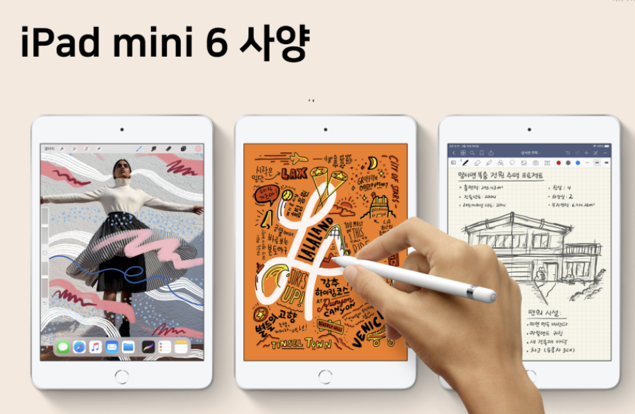 아이패드 미니는 A12 칩셋 탑재, 애플 펜슬 지원 등을 포함해 지난 2019년 마지막으로 업데이트 되었다고 합니다.