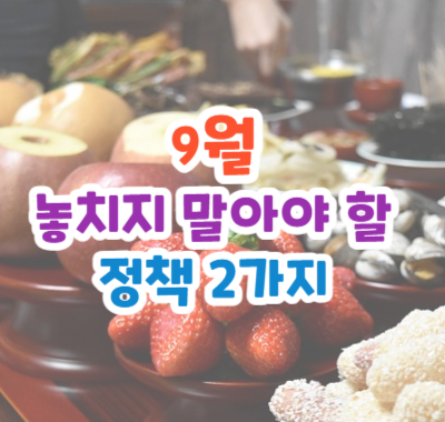 오늘은 9월 놓치지 말아야 할 정책 2가지를 소개해 드리겠습니다.