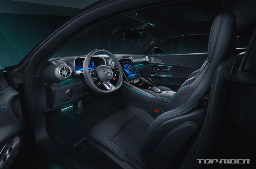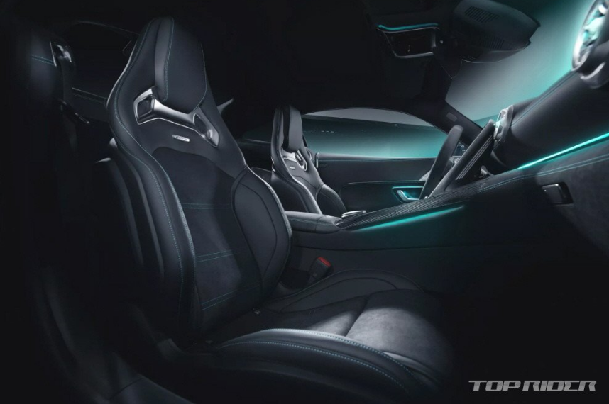 실내도 아쿠아마린 컬러가 강조됐습니다. 대시보드와 도어트림, 센터콜손, 시트 등에 아쿠아마린 컬러 스티칭이 추가됐다고 합니다. 조명 기능이 포함된 도어 플레이트, 앰비언트 램프, 나파 가죽과 마이크로파이버 천이 조합된 스포츠 시트 등이 배치됐다고 합니다. 실내 곳곳은 카본 소재로 마감됐습니다.