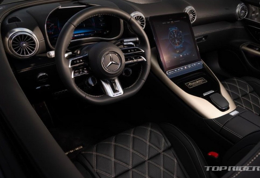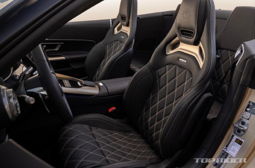 AMG SL 골든 코스트는 AMG 패키지, AMG 익스텐드 나이트 패키지, AMG 에어로 다이내믹 패키지 등이 기본이라고 합니다. 실내에는 수작업으로 제작된 나파 가죽 AMG 퍼포먼스 시트가 적용됐습니다. 스티어링 휠, 도어 패널 등에는 골드 컬러 다이아몬드 스티칭이 추가됐다고 합니다.