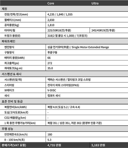 작은 차체지만 1.8톤에 달하는 무게는 소형차로 보기 어려운 승차감을 전합니다. 과속방지턱을 넘어서는 동작이나 요철은 효과적으로 소화합니다. 전기차 특유의 뻣뻣함 섀시 감각이 억제됐으며, 내연기관차에 가까운 터닝서클을 보여줍니다. 자동주차까지 지원해 초보운전자에게도 어울립니다.