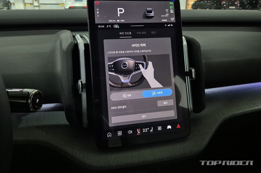 실내는 수평형 대시보드와 12.3인치 세로형 디스플레이, 그리고 윈드실드 하단의 사운드바를 통해 개방감이 강조됐습니다. 사이드미러 조절을 비롯한 대부분의 조작은 센터 디스플레이와 스티어링 휠의 방향키를 통해 가능합니다. 가죽이 전무한 실내는 울(Wool)이 주는 고급감이 인상적입니다.