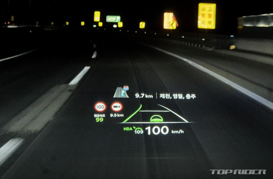 고속주행시고속주행 시 안정감은 우수한 편인데, 차체 특성과 비교하면 다소 부드러운 셋업을 추구합니다. 일상적인 고속주행 시의 안정감은 서스펜션만 스포츠로 변경하는 MY 모드 설정을 추천합니다. VGS 구동 시 내연기관차와 유사한 사운드와 변속감각, 레브매칭은 2025년 기준 현대차그룹이 최고입니다.