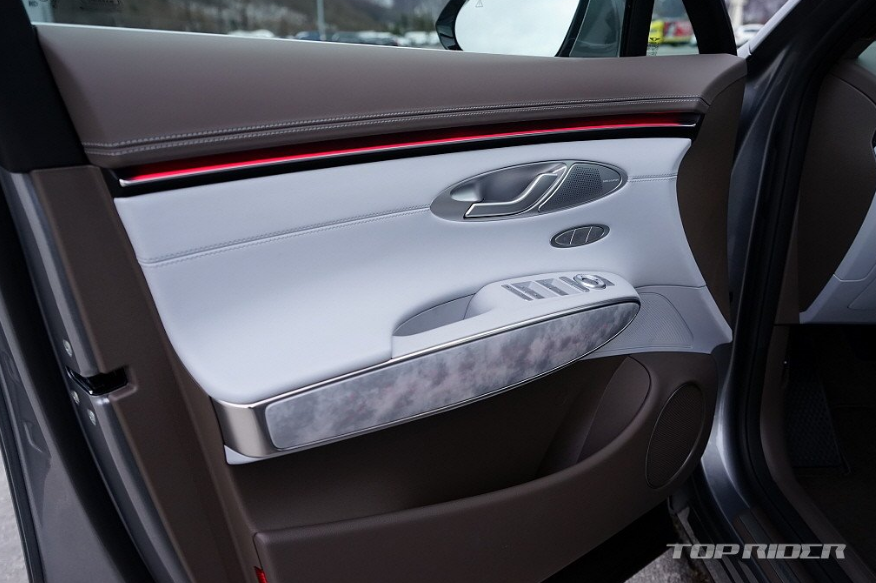일상주행에서의 승차감은 부드러운 편입니다. 기존 모델의 출렁임에 가까운 부드러움에서 다소 정제된 부드러움으로 개선됐다고 합니다. 특히 앞뒤 피칭이 크게 줄어 전기차의 급가속과 급감속 상황에 어울립니다. 후륜 PE 마운트 부싱과 후륜 크로스멤버 전방 하이드로 부싱, 감쇠력 제어가 개선됐다고 합니다.